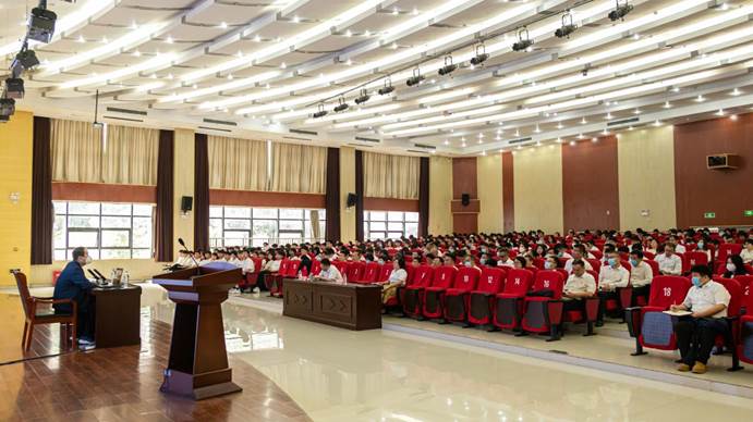学校党委书记冯向军、工会主席姜荣蓉出席报告会,全校中层干部、副科级干部及全体党员参加学习。报告会由党委组织部部长郑世猛主持。