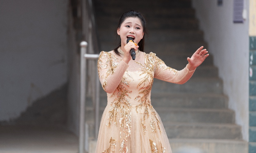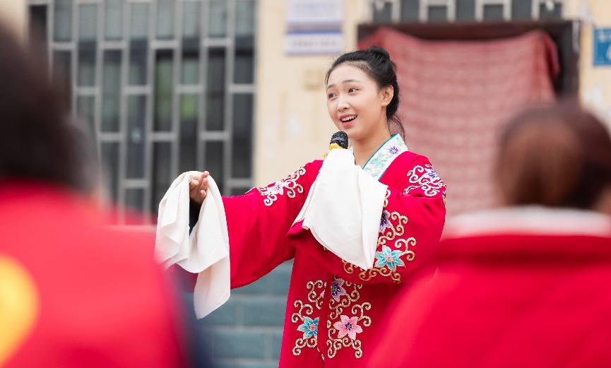 戏曲专业教师齐佳玉带来的豫剧《朝阳沟》“祖国的大建设一日千里”选段,唱腔激昂,情感充沛,唱出了新时代的奋斗激情。