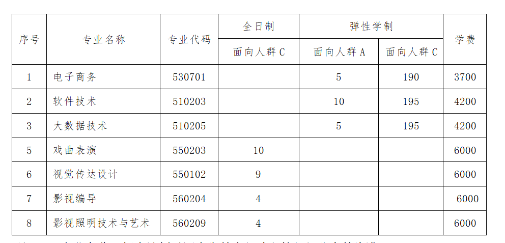 3、学校高职扩招专业面向人群为AC类:A 为退役军人类; C 为其他(含应往届高中和中职毕业生、企业在职职工、下岗失业人员、灵活就业人员、农民工等)含应往届高中和中职毕业生、企业在职职工、下岗失业人员、农民工等。考生应按照本人所属类别报考我校专业。